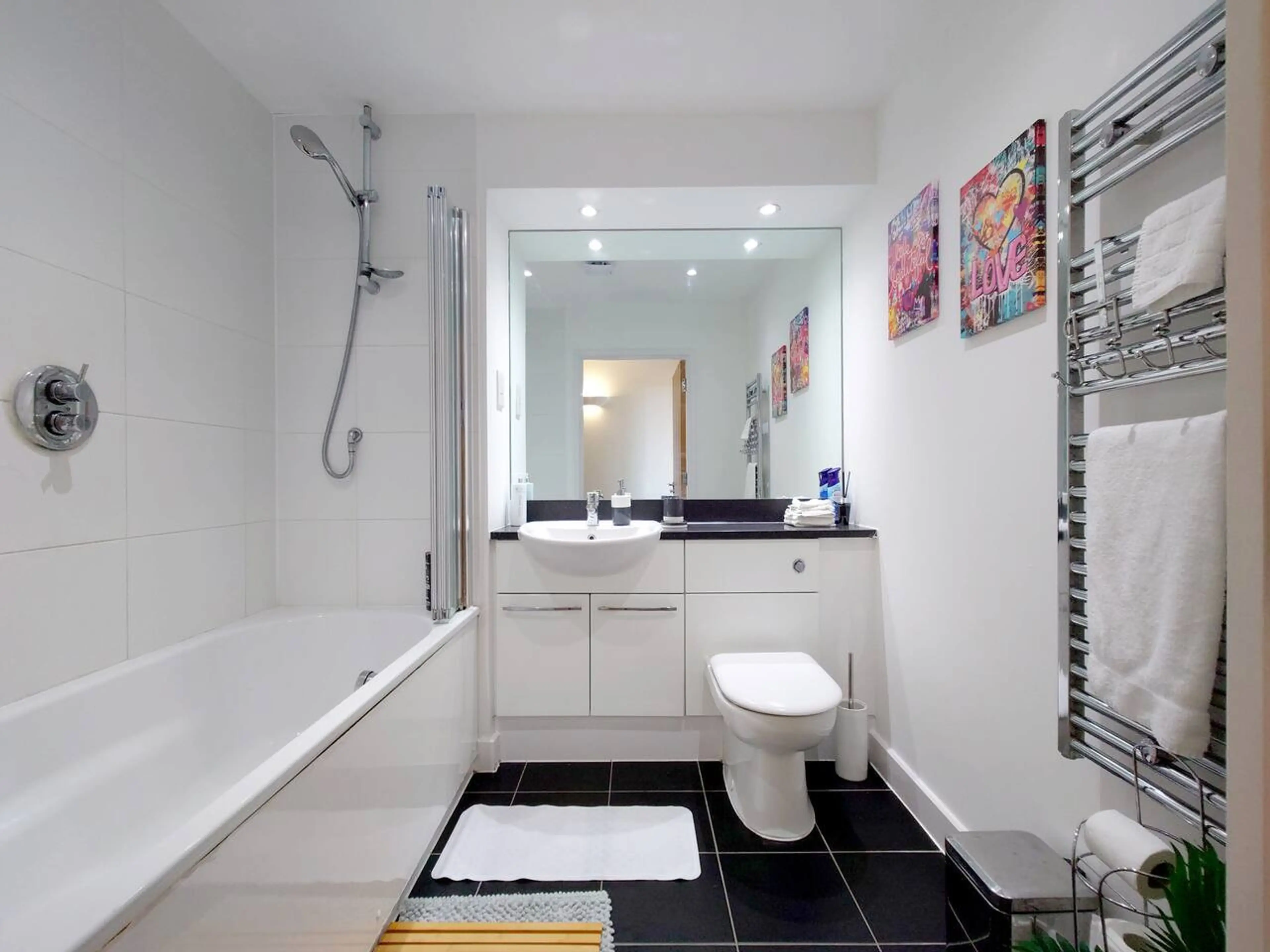 Stylish one-bed apartment moments from London ExCeL, ideal for business trips or city breaks. Enjoy a comfy king bed, modern bathroom, fast Wi-Fi and smart TV. Cook in the fully equipped kitchen or unwind in the bright lounge with floor-to-ceiling windows and Juliet balcony. Secure modern building w...
